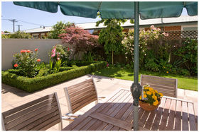 Beautifully landscaped, private grounds, with BBQ area and very productive raised vegetable garden.