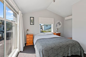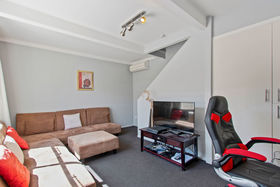 Downstairs there is a sunny, spacious living area and kitchen/laundry, with two private courtyards. Upstairs you will find a generous double bedroom, study nook, and ensuite bathroom which also has a door from the upstairs landing. Comfort and convenience are assured with 2 heat pumps (great for keeping you cool during summer months), and an automatic garage door.