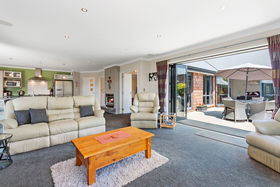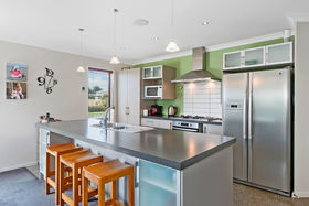 Polished concrete flooring embraces both the entranceway and kitchen area. The well appointed kitchen offers views to the reserve and also overlooks the two sun-drenched living areas that have easy access to the outdoors which makes for great entertaining over the summer months. A very impressive Onkyo entertainment system has been installed with speakers in both living and the master bedroom and in the outside eaves, it really is the ideal party home for family and friends. A heat pump, double sided gas fire and moisture master system help keep you living in comfort throughout the year.