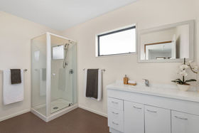 Downstairs, the open plan living, kitchen, and separate lounge is ideal and comfortable for the needs of a modern family - whilst also incorporating a master bedroom with ensuite, walk in robe, and small office. Modern conveniences, woodburner and heat pump for winter warmth, HRV system. It's all here.